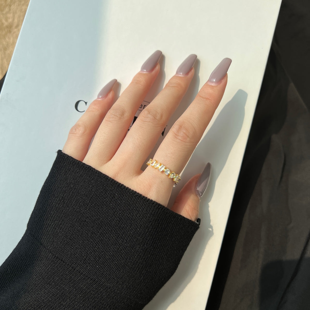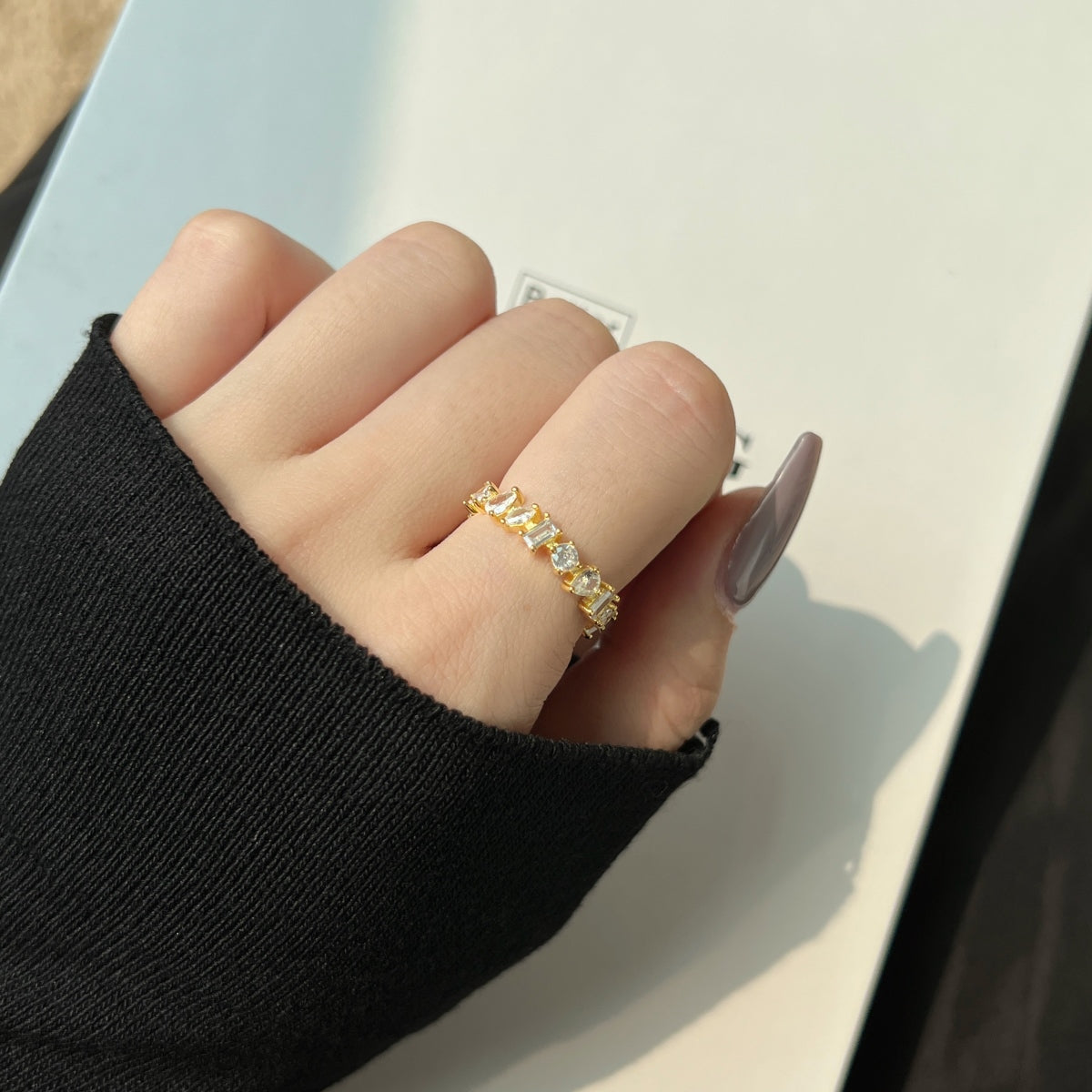 A beautifully crafted eternity ring with alternating stone shapes, representing endless love and commitment. Ideal for weddings or anniversaries.