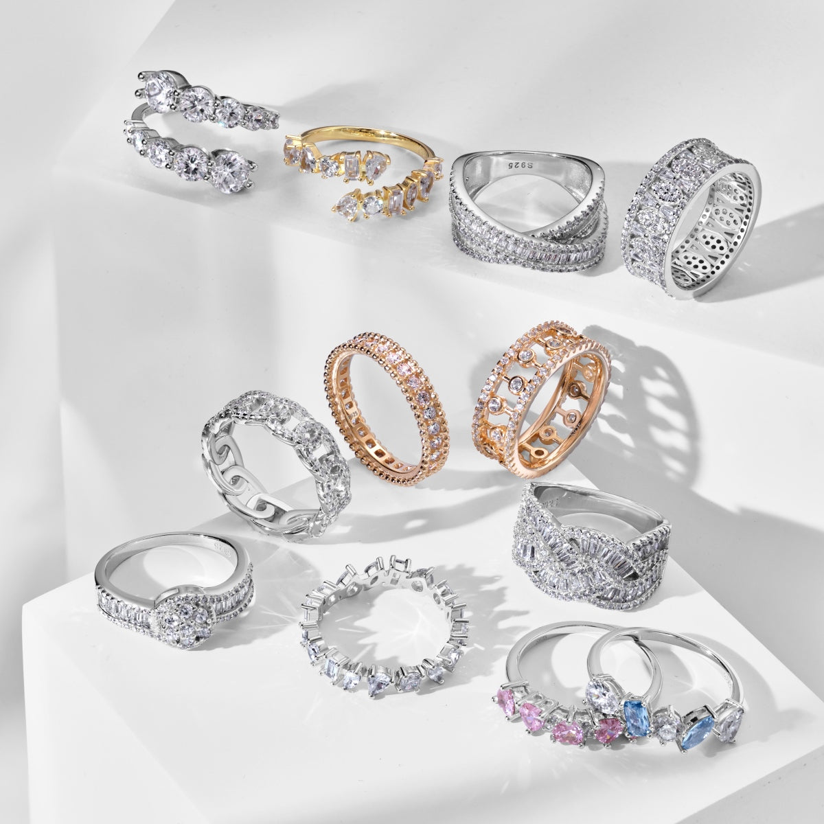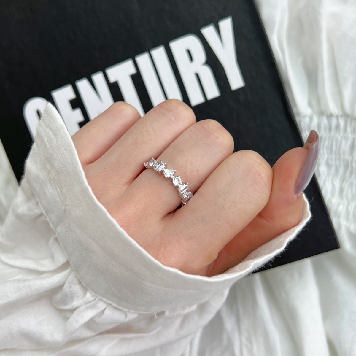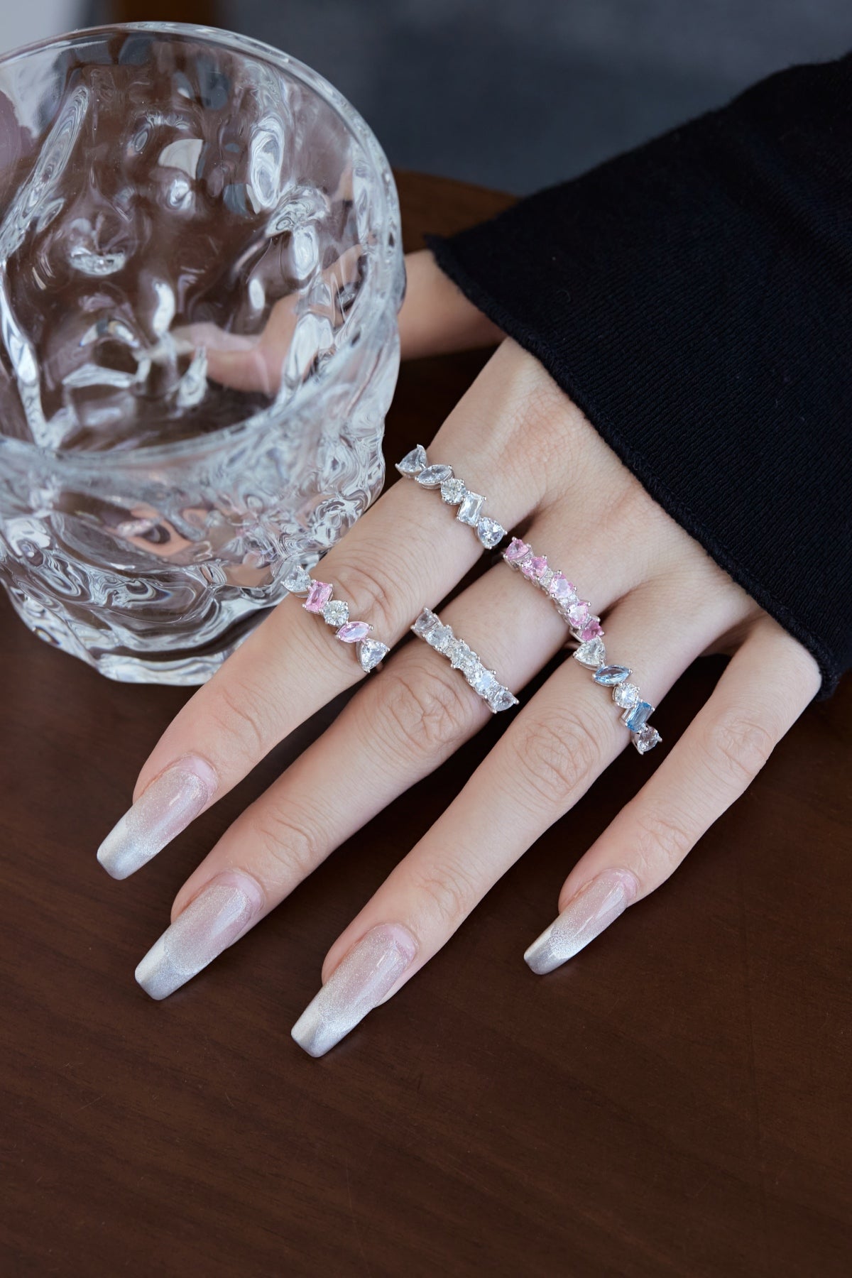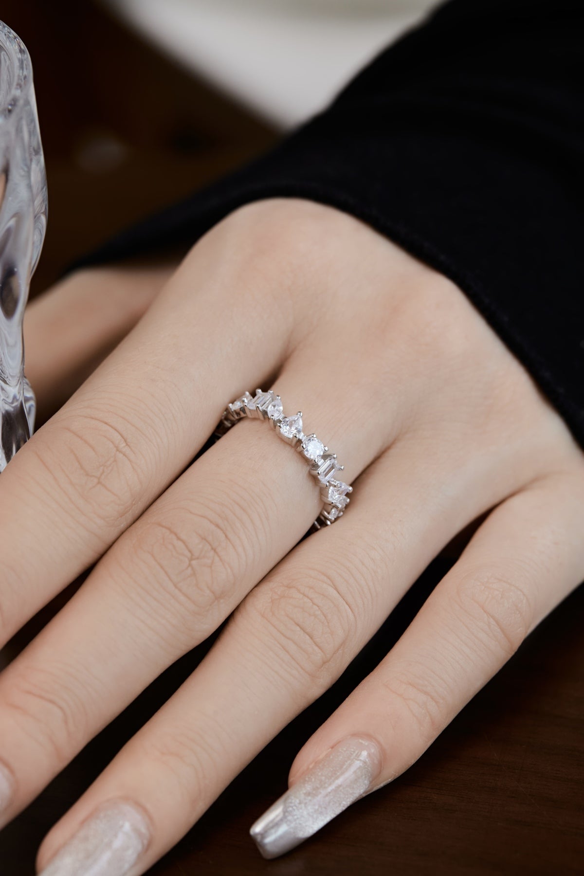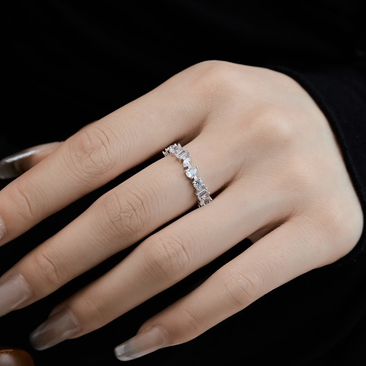 A silver version of the eternity ring with a dazzling mix of marquise, emerald, and round-cut stones. Symbolic of lasting beauty and elegance.