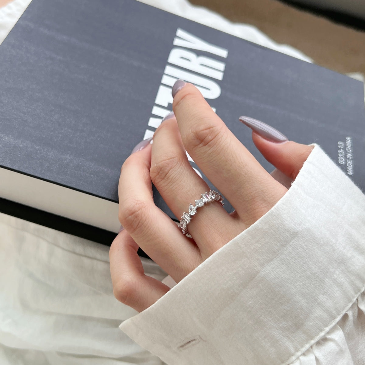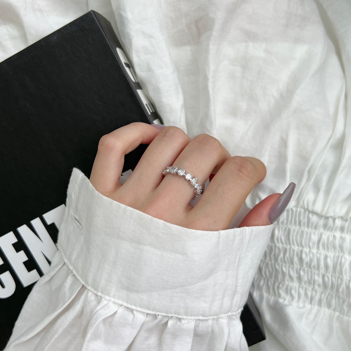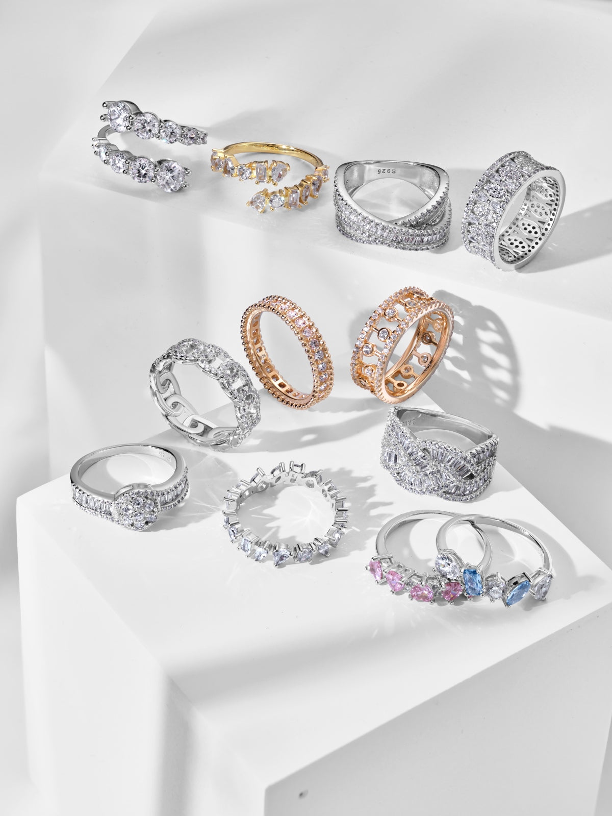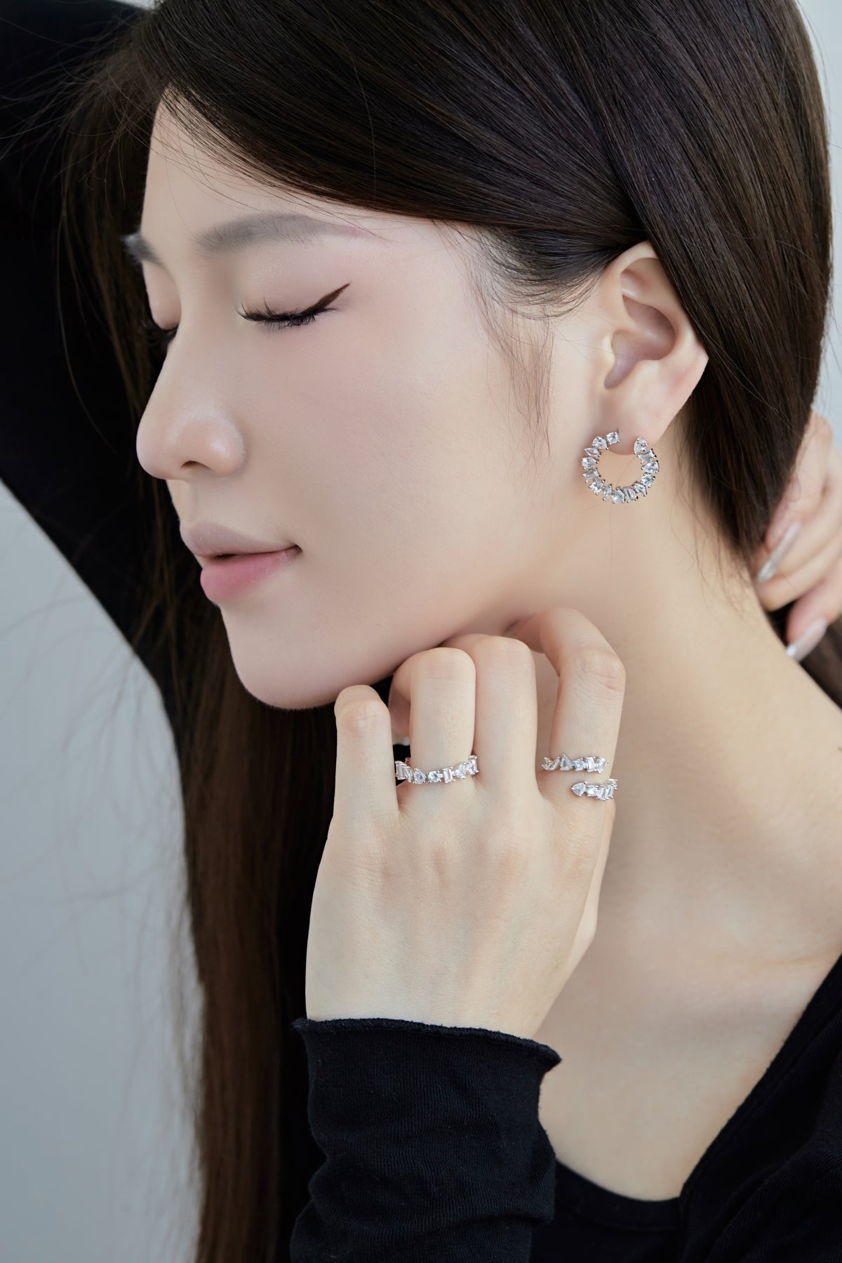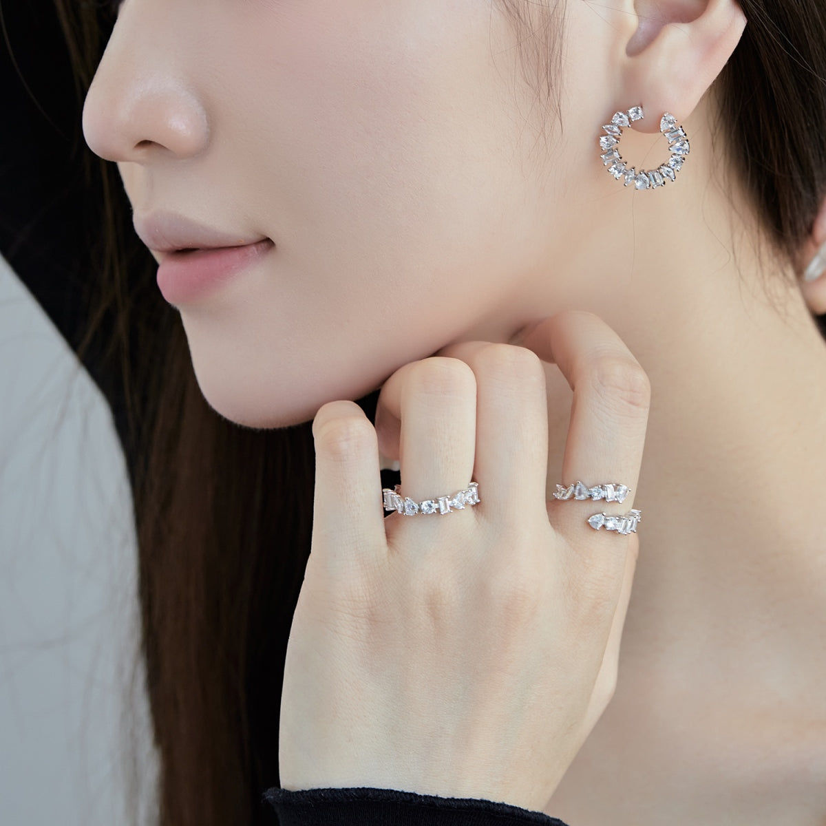 A silver version of the eternity ring with a dazzling mix of marquise, emerald, and round-cut stones. Symbolic of lasting beauty and elegance.