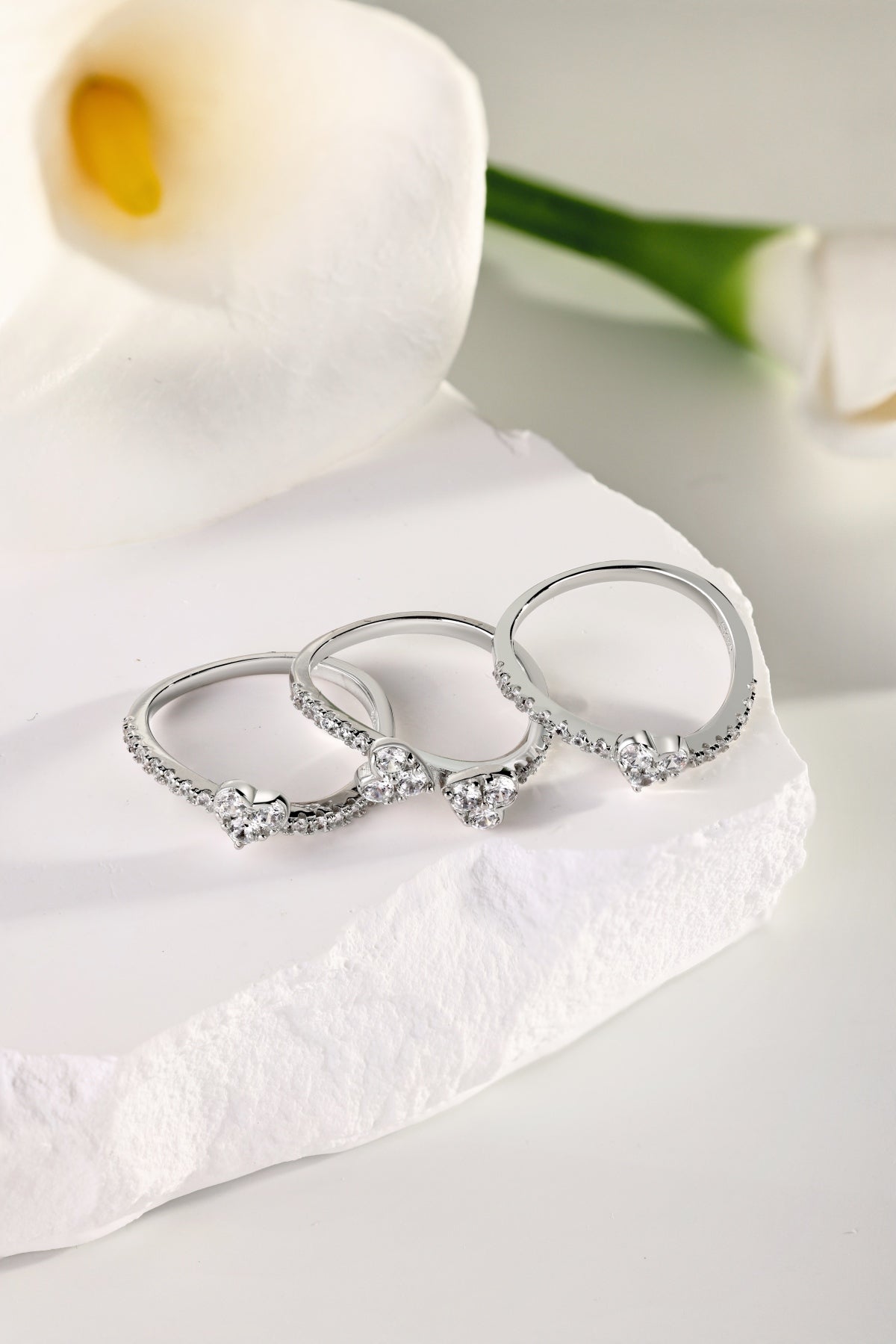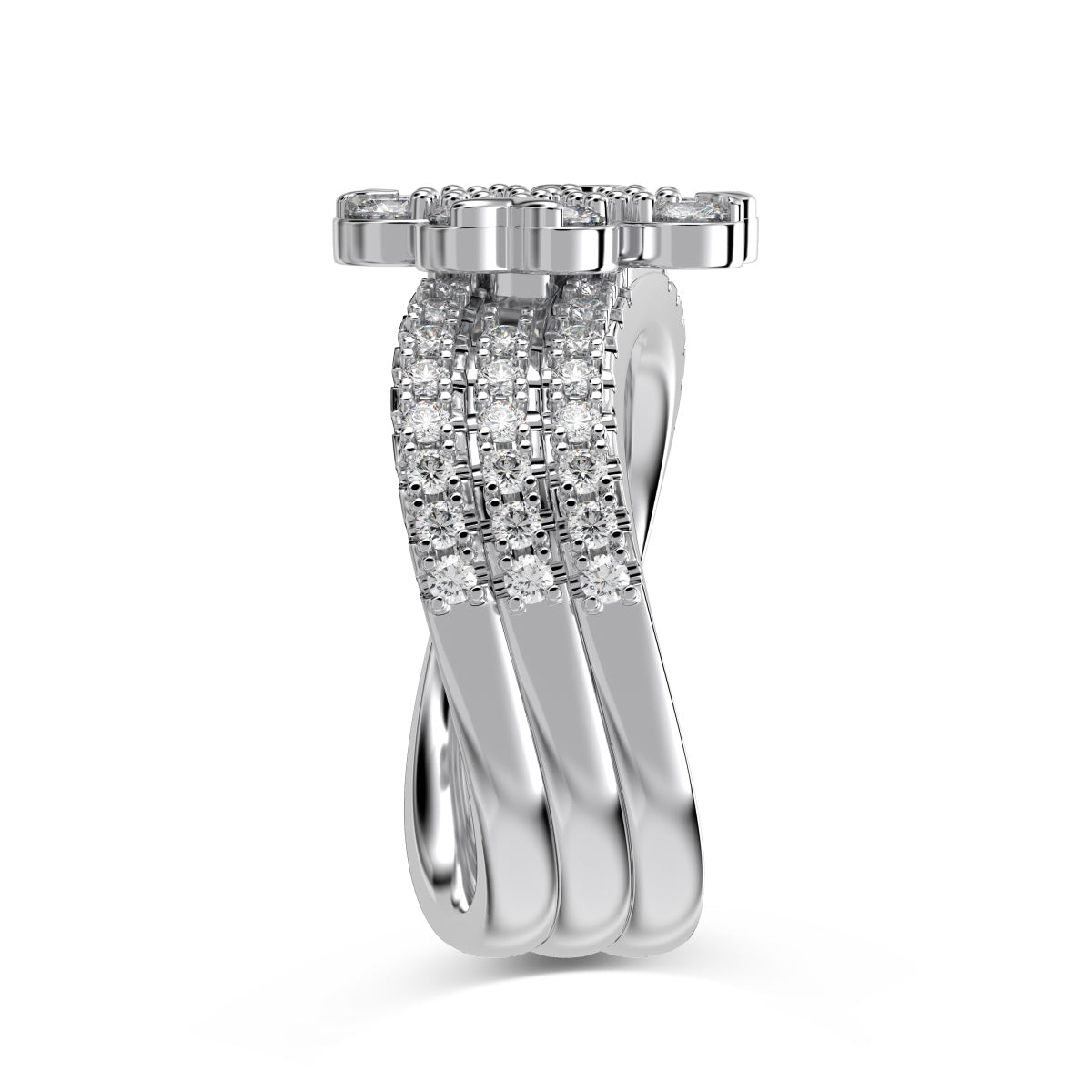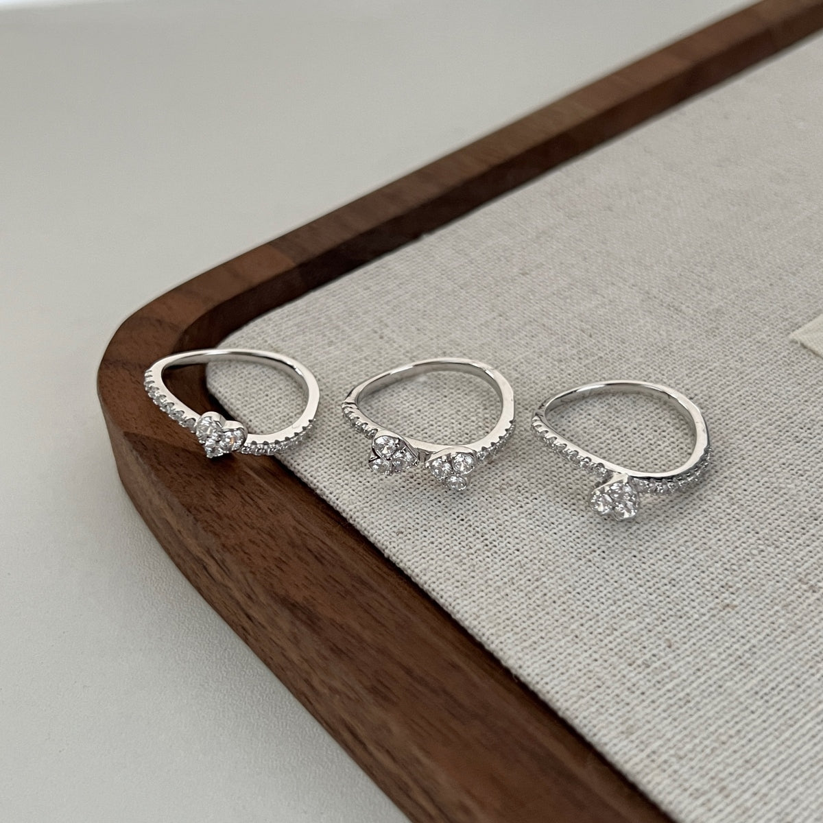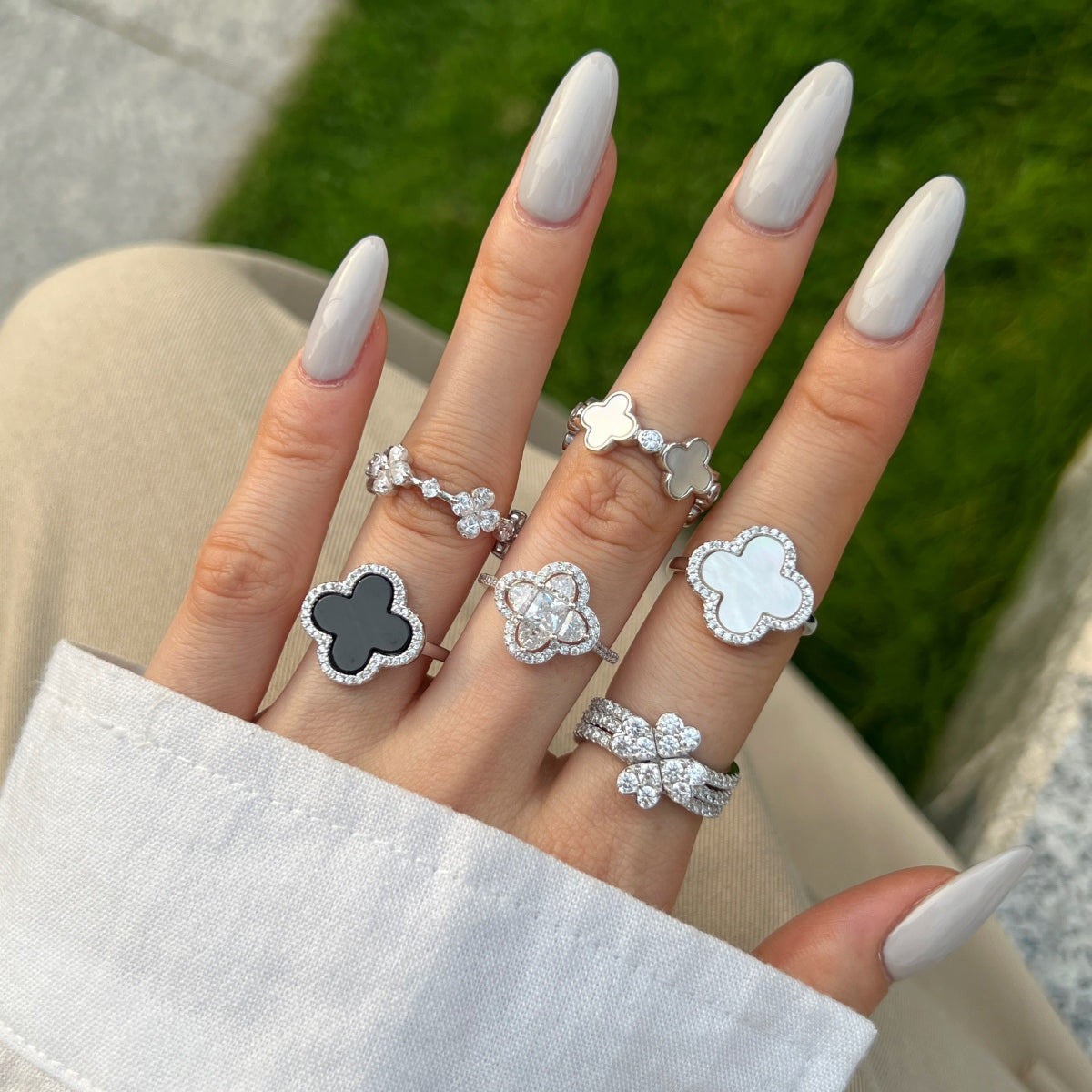 A charming silver floral ring adorned with cluster-cut stones in a floral motif, adding a nature-inspired beauty to your style.