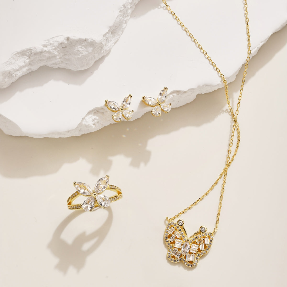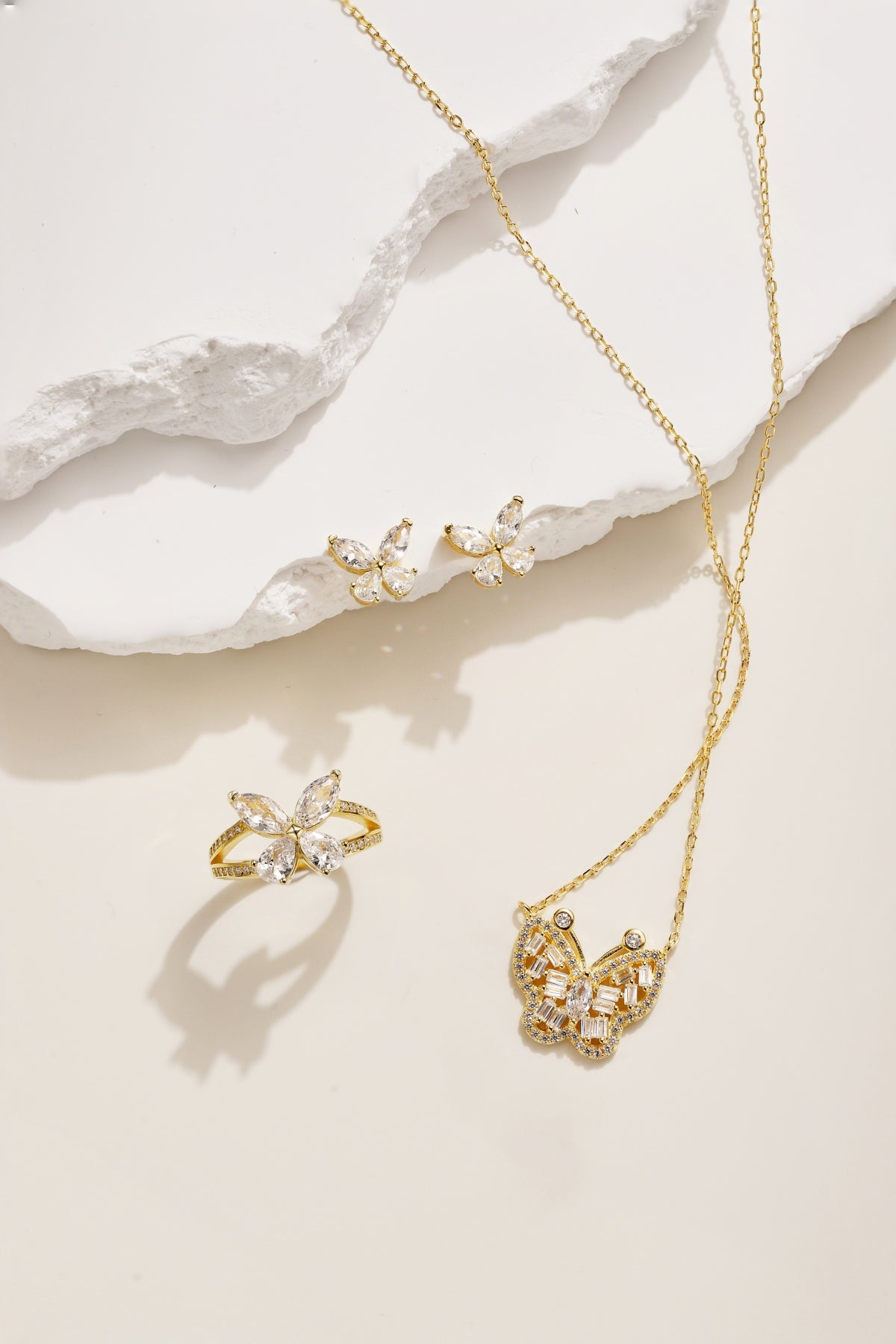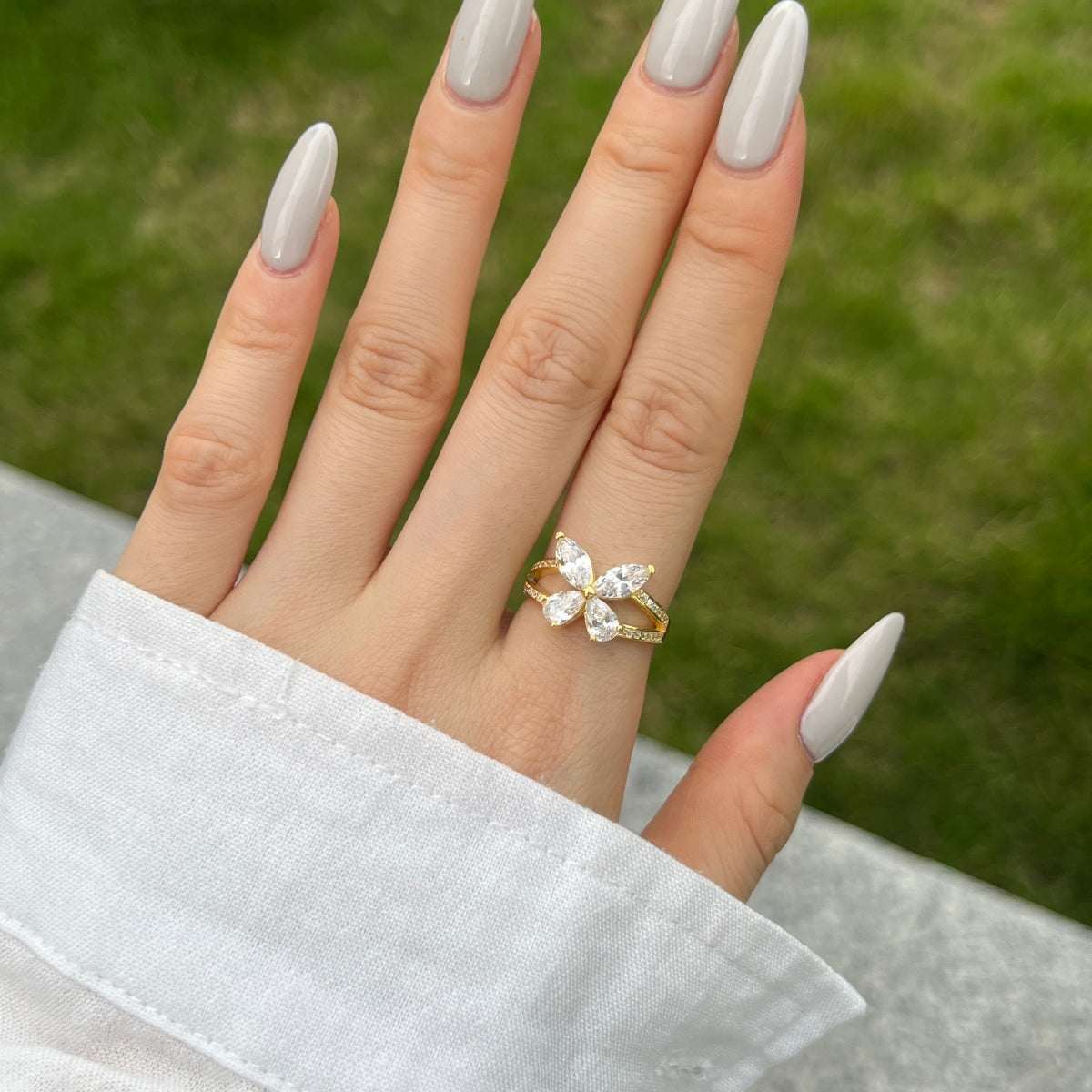 A flower-inspired gold ring with three pear-shaped stones forming a blooming design, capturing the essence of nature and luxury.